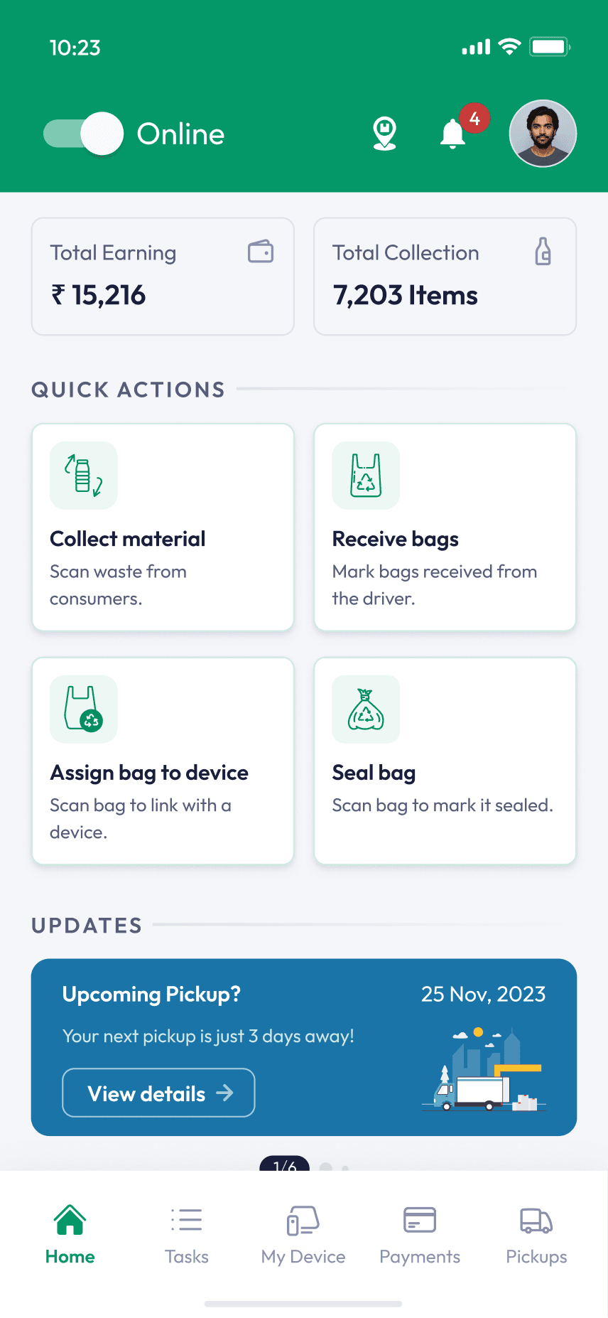 An operational platform within the DRS ecosystem designed to help collection agents manage device health, manual returns, earnings tracking, and pickup coordination efficiently in real-world conditions.